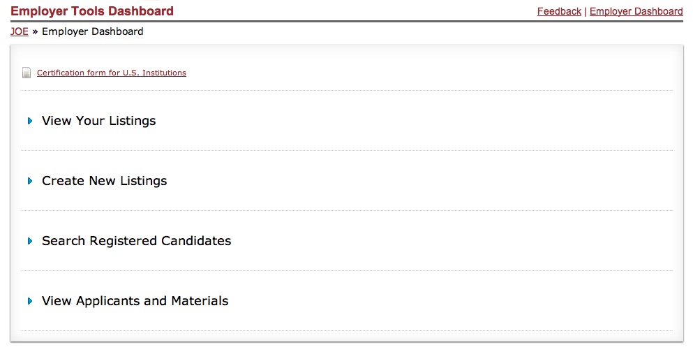 Login or create an employer account (note that if you previously had an employer account, your login will work in the new system) at aeaweb.org/joe.