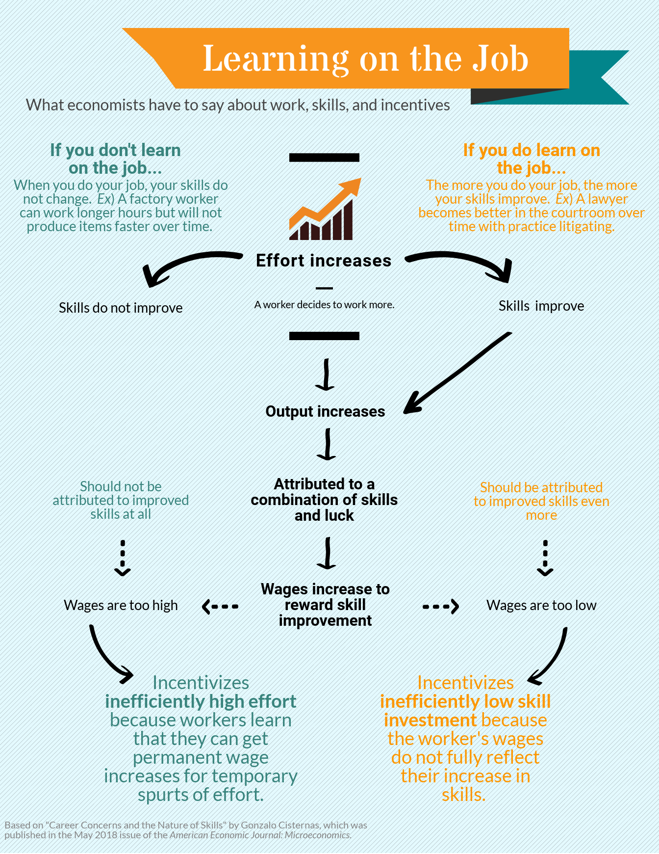 Wages should align with skills. That way, workers have the incentive to invest in their skills, which ultimately benefits the employer. But because employers can’t tell if work products are due to skills or effort, they assume that it’s a little bit of both.