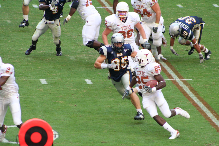 The University of Texas Longhorns play the Rice Owls in a football game in 2006.