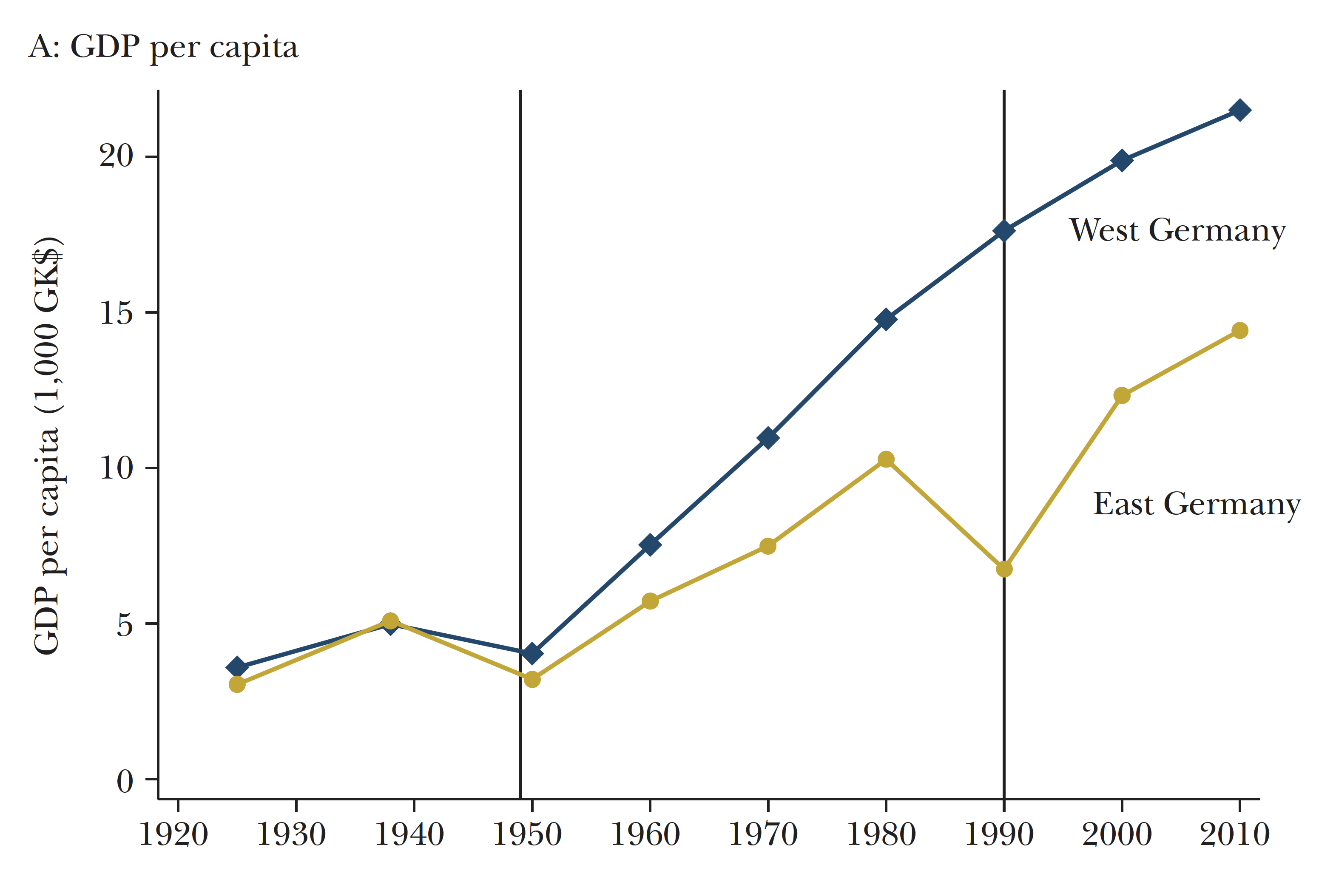 Figure 1 from the authors’ paper gives a glimpse of the different trajectories that the two German regions took.