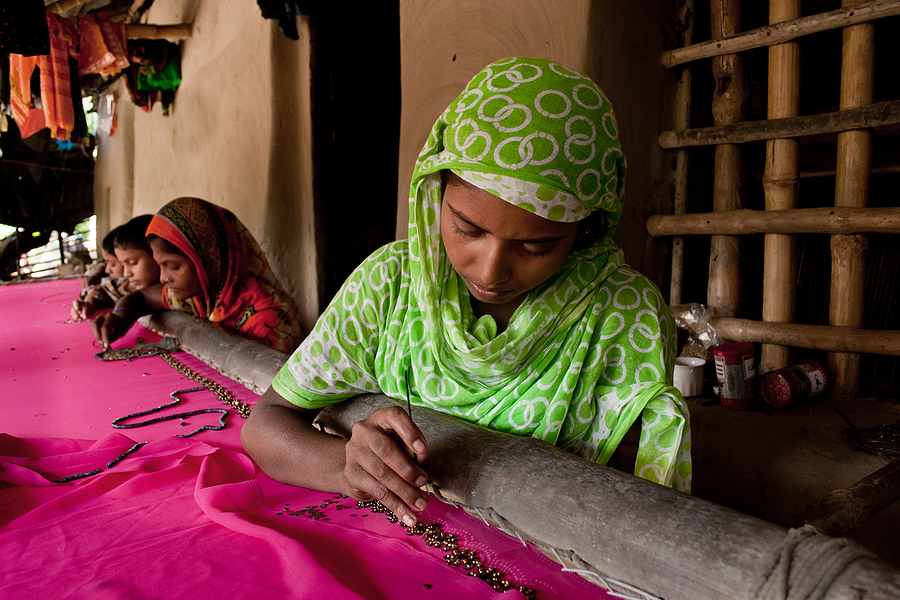 Rural Indian women make hand-knitted garments in the outskirts of Kolkata.