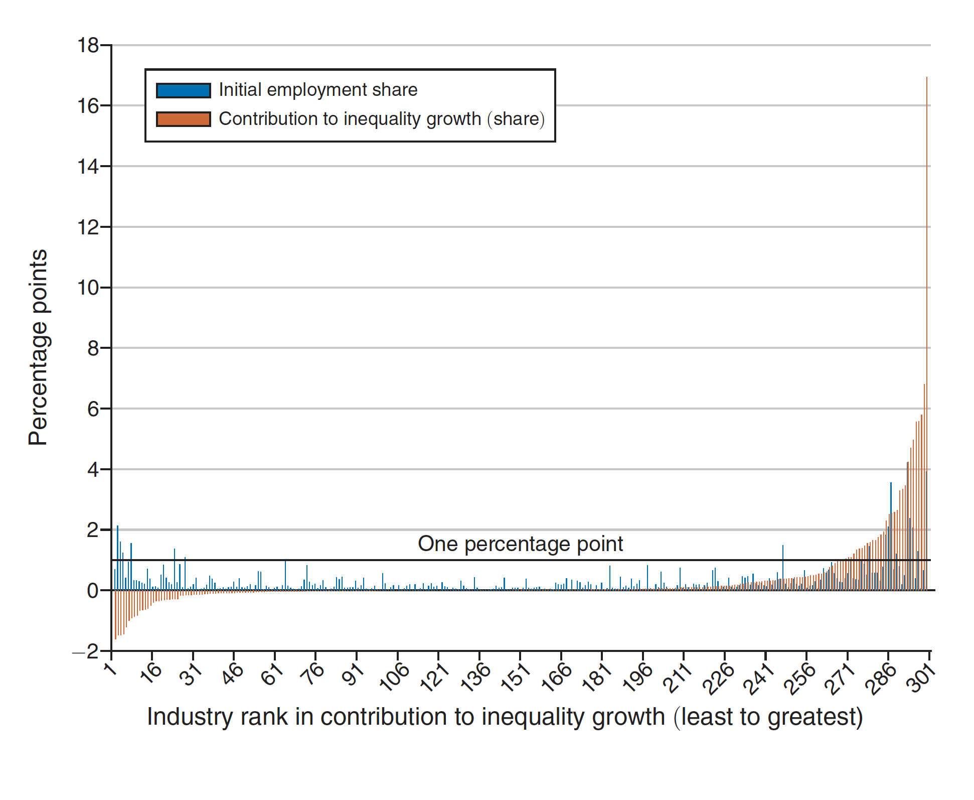 A small set of industries accounts for the rise in US earnings inequality over the last two decades.