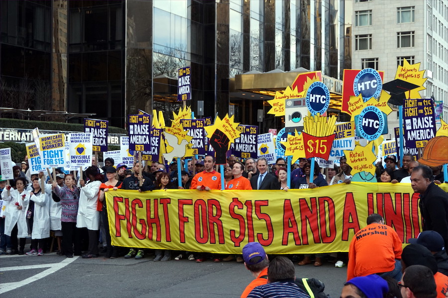 New York City march to raise the minimum wage in America.