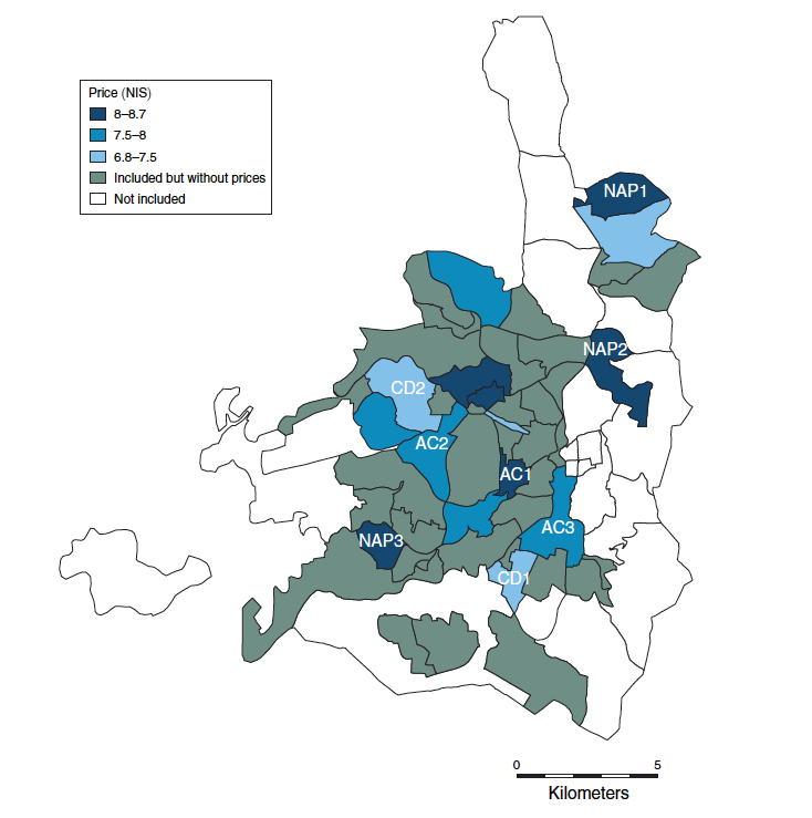 The authors collected price data on a basket of 27 popular products, as well as credit card data to study household spending patterns for residents of West Jerusalem. They confirmed what boycotters were saying: Jerusalem residents in the non-affluent periphery areas of the city were paying as much as 15 to 20 percent more.