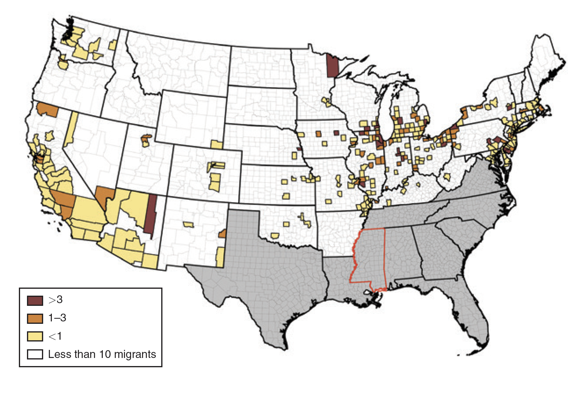 Both groups of migrants fanned out across the United States, but the cities and towns where they ultimately settled were intimately tied to the family, friends, and acquaintances that went before them, according to a paper in the American Economic Journal: Applied Economics.