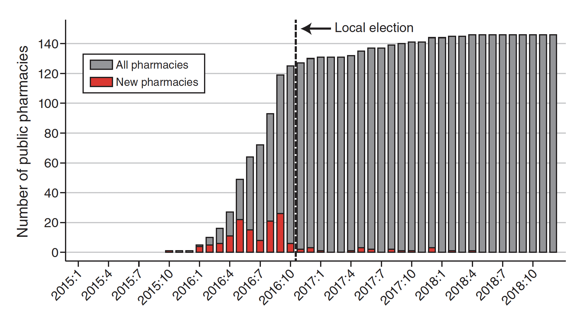 Analyzing the rollout between 2015 and 2018, the researchers compared counties before and after a public option entered a local market to counties without a public option. This comparison revealed that private pharmacies lost only 4 percent of their sales to public pharmacies. Moreover, private pharmacies actually increased their prices by 1 percent on average.